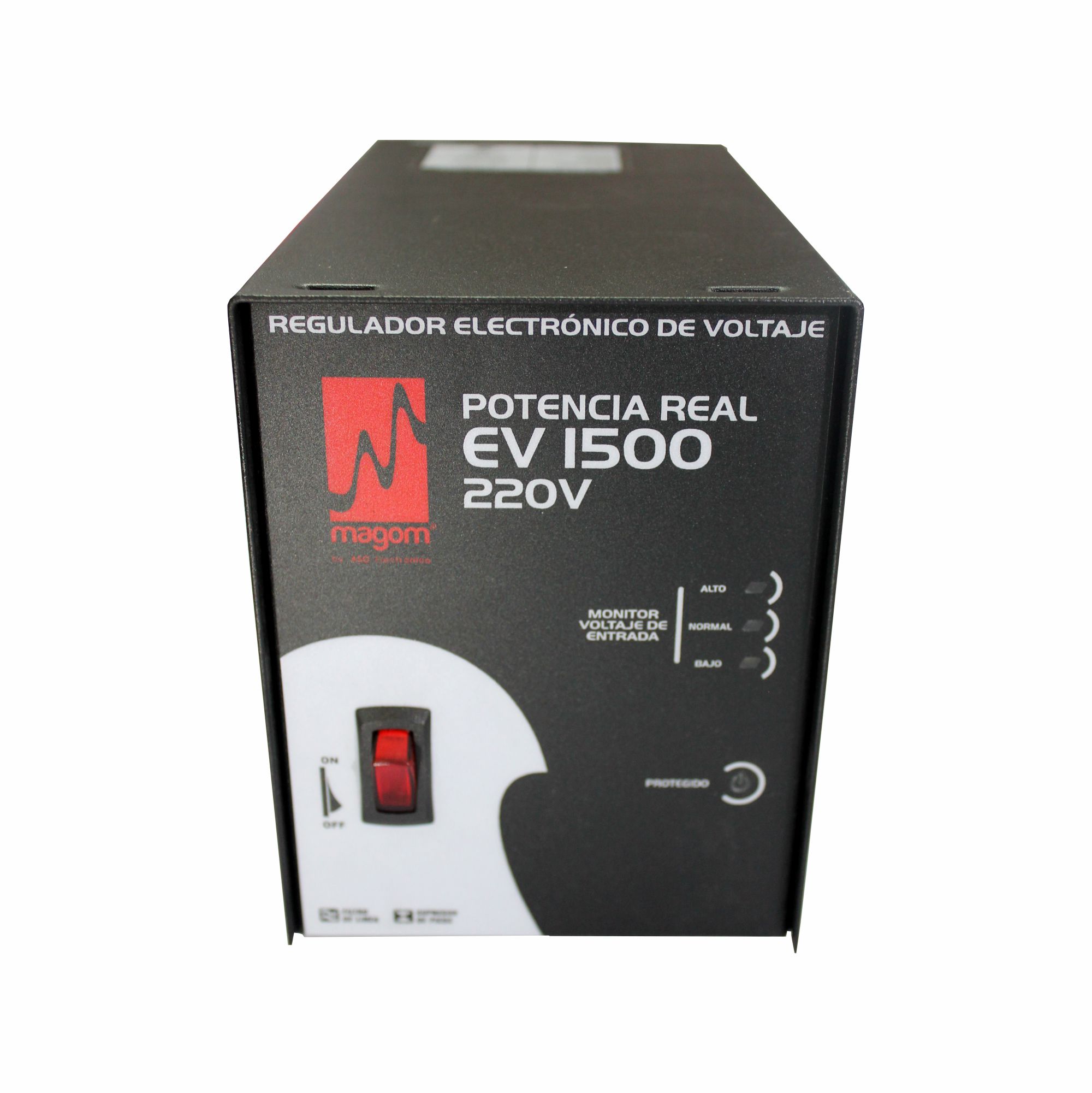 Capacidad:1500 VA Rango de entrada:170 ~ 260 VAC Voltaje de Salida: 220 VAC -5/+4% Protección de sobrecarga: Fusible 10A Taps de Conmutación: 7 Salidas: 1 salida NEMA 6-15R + Regleta de potencia